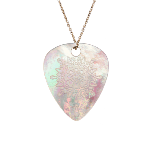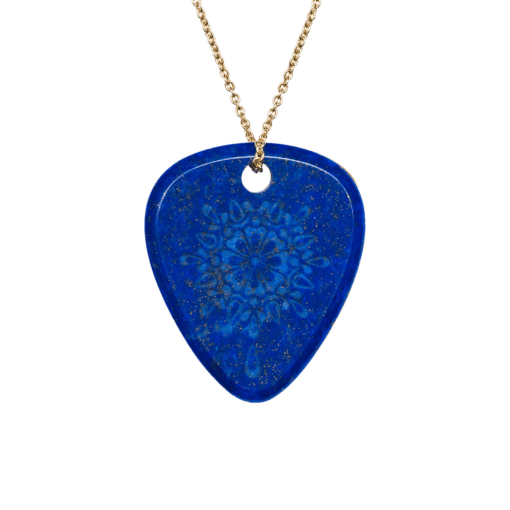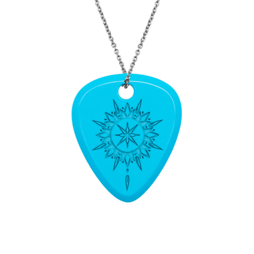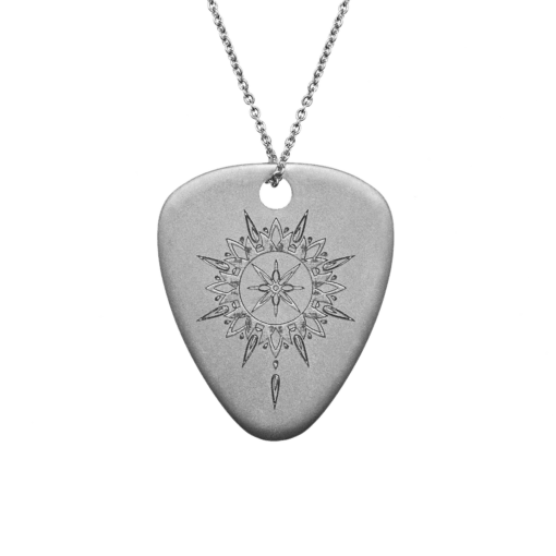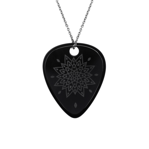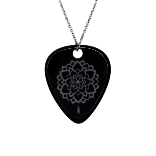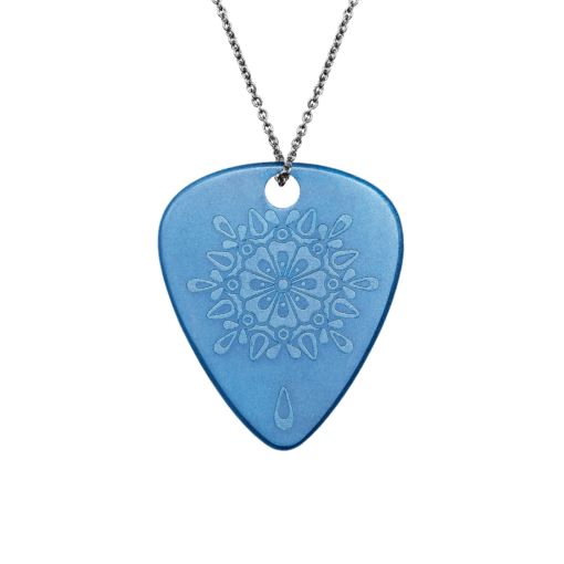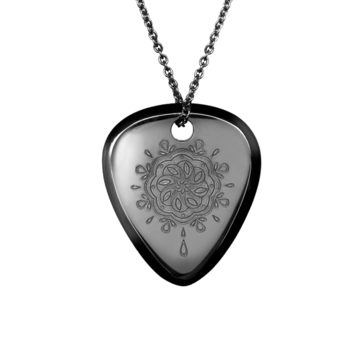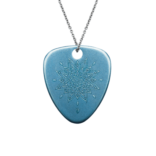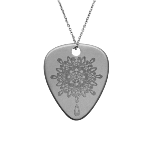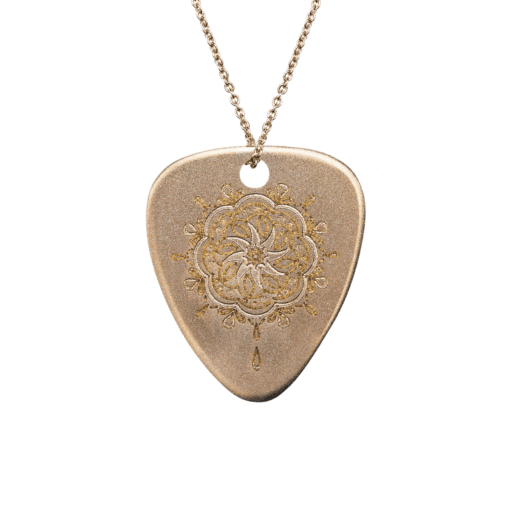 La collection Mandalic (contraction de mandala et de l’anglais « guitar pick ») par Jenny Dee se compose de mandalas sculptés ou gravés sur des plectres de guitare.