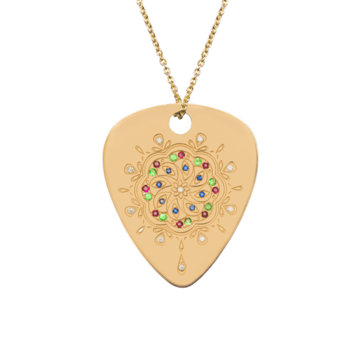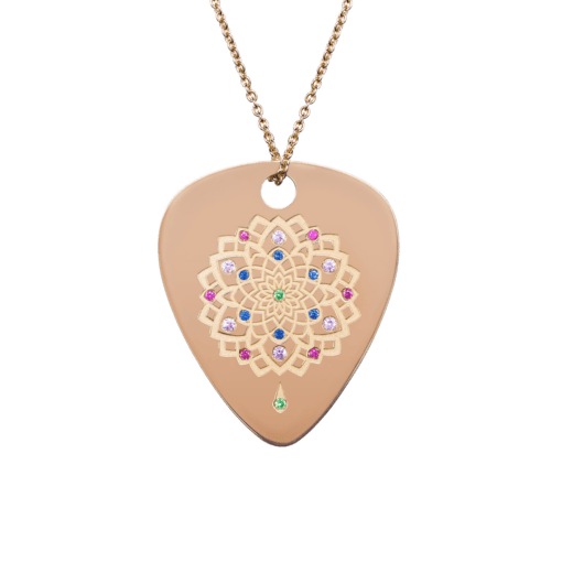 Emblématique du goût de la créatrice pour la musique et de son attrait pour l’ésotérisme et la spiritualité, chaque mandala possède une signification particulière qui offre à son détenteur protection et force intérieure. Ces pendentifs psychédéliques sont des diagrammes sacrés qui s’adressent à celles et ceux qui peuvent lire dans ces talismans le symbole d’une connexion profonde à la spiritualité. Fort de sens, chaque Mandalic est livré avec une carte de tarot « Jenny Dee » détaillant sa symbolique. Le Mandalic existe en plusieurs déclinaisons ; gravé au laser sur de l’or 18 carats ou du titane, ou sculpté dans un vaste choix de pierres semi-précieuses. Il existe notamment une version d’exception du pendentif, en or 18 carats serti de saphirs multicolores et psychédéliques.
